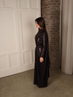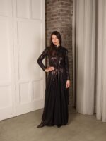Metallic brown top and pleated skirt set with a shiny, elegant finish.