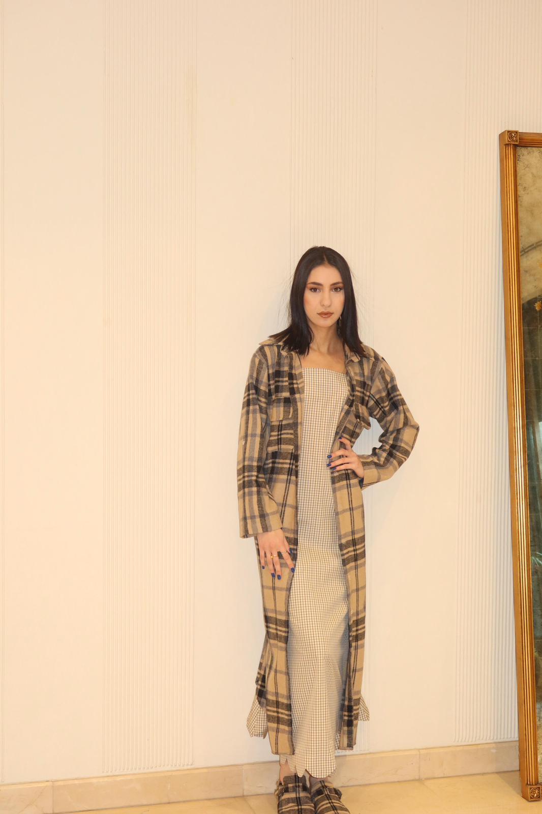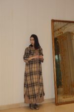 Free size Relaxed fit coat-dress crafted in timeless plaid. Designed for structure, comfort, and versatile styling.